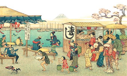 El nigiri consistía en una pequeña bola de arroz avinagrado con una lámina de pescado fresco encima. Era barato, nutritivo y podía comerse de pie en puestos callejeros. El sushi era, literalmente, la comida rápida del Japón del XIX.
